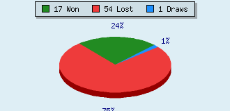 0 games running 72 games finished 17 games won: 6 by mate 7 by resign 4 by timeout 54 games lost: 22 by mate 28 by resign 4 by timeout (= 5.6% ZÜ-Quote) 1 games drawn