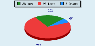 0 games running 129 games finished 28 games won: 9 by mate 15 by resign 4 by timeout 93 games lost: 0 by mate 66 by resign 27 by timeout (= 20.9% ZÜ-Quote) 8 games drawn