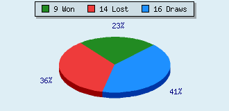 0 games running 39 games finished 9 games won: 2 by mate 6 by resign 1 by timeout 14 games lost: 0 by mate 14 by resign 0 by timeout (= 0% ZÜ-Quote) 16 games drawn
