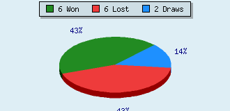 0 games running 14 games finished 6 games won: 3 by mate 2 by resign 1 by timeout 6 games lost: 0 by mate 6 by resign 0 by timeout (= 0% ZÜ-Quote) 2 games drawn