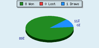 0 games running 9 games finished 8 games won: 0 by mate 8 by resign 0 by timeout 0 games lost: 0 by mate 0 by resign 0 by timeout (= 0% ZÜ-Quote) 1 games drawn