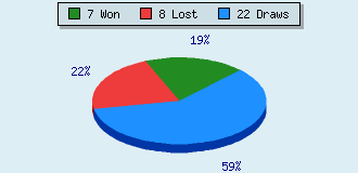 0 games running 37 games finished 7 games won: 1 by mate 6 by resign 0 by timeout 8 games lost: 0 by mate 8 by resign 0 by timeout (= 0% ZÜ-Quote) 22 games drawn