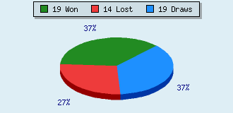 0 games running 52 games finished 19 games won: 4 by mate 12 by resign 3 by timeout 14 games lost: 0 by mate 10 by resign 4 by timeout (= 7.7% ZÜ-Quote) 19 games drawn