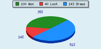 0 games running 283 games finished 100 games won: 4 by mate 83 by resign 11 by timeout 2 by breakup 40 games lost: 0 by mate 34 by resign 6 by timeout (= 2.1% ZÜ-Quote) 143 games drawn