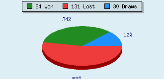 0 games running 245 games finished 84 games won: 5 by mate 56 by resign 23 by timeout 131 games lost: 2 by mate 125 by resign 4 by timeout (= 1.6% ZÜ-Quote) 30 games drawn