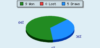 0 games running 14 games finished 9 games won: 0 by mate 7 by resign 2 by timeout 0 games lost: 0 by mate 0 by resign 0 by timeout (= 0% ZÜ-Quote) 5 games drawn