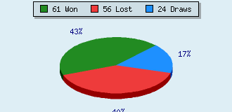 0 Partien am laufen 141 Partien beendet 61 Partien gewonnen: 4 durch Matt 49 durch Aufgabe 8 durch Zeitüberschreitung 56 Partien verloren: 4 durch Matt 51 durch Aufgabe 1 durch Zeitüberschreitung (= 0.7% ZÜ-Quote) 24 Partien remisiert