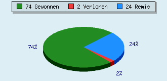 0 games running 100 games finished 74 games won: 6 by mate 55 by resign 13 by timeout 2 games lost: 0 by mate 2 by resign 0 by timeout (= 0% ZÜ-Quote) 24 games drawn