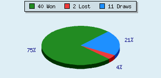 0 Partien am laufen 53 Partien beendet 40 Partien gewonnen: 2 durch Matt 35 durch Aufgabe 3 durch Zeitüberschreitung 2 Partien verloren: 0 durch Matt 2 durch Aufgabe 0 durch Zeitüberschreitung (= 0% ZÜ-Quote) 11 Partien remisiert