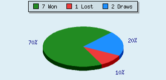 1 games running 10 games finished 7 games won: 2 by mate 4 by resign 1 by timeout 1 games lost: 0 by mate 0 by resign 1 by timeout (= 10% ZÜ-Quote) 2 games drawn