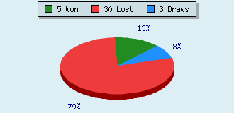 0 games running 38 games finished 5 games won: 1 by mate 2 by resign 2 by timeout 30 games lost: 27 by mate 1 by resign 2 by timeout (= 5.3% ZÜ-Quote) 3 games drawn