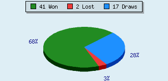 0 games running 60 games finished 41 games won: 5 by mate 32 by resign 4 by timeout 2 games lost: 0 by mate 2 by resign 0 by timeout (= 0% ZÜ-Quote) 17 games drawn