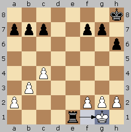 Weiß kann hier den König auf kein Feld stellen welches nicht vom Turm beherrscht ist, hat keine Steine zur Verfügung um diese zwischen dem schwarzen Turm und den weißen König zu stellen und kann auch nicht den Turm schlagen, somit ist Weiß matt.